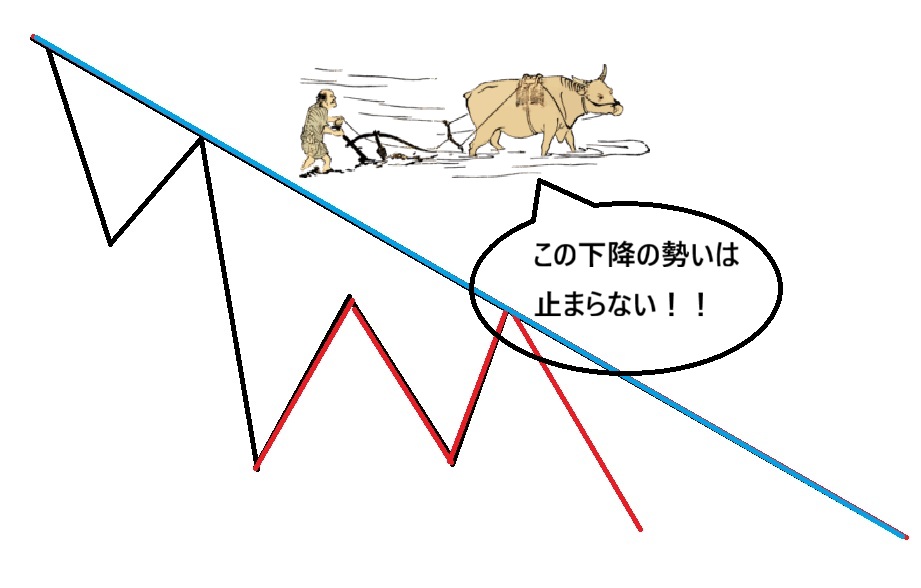 左のチャートのようにはじめは一般的な下降トレンドとなる。