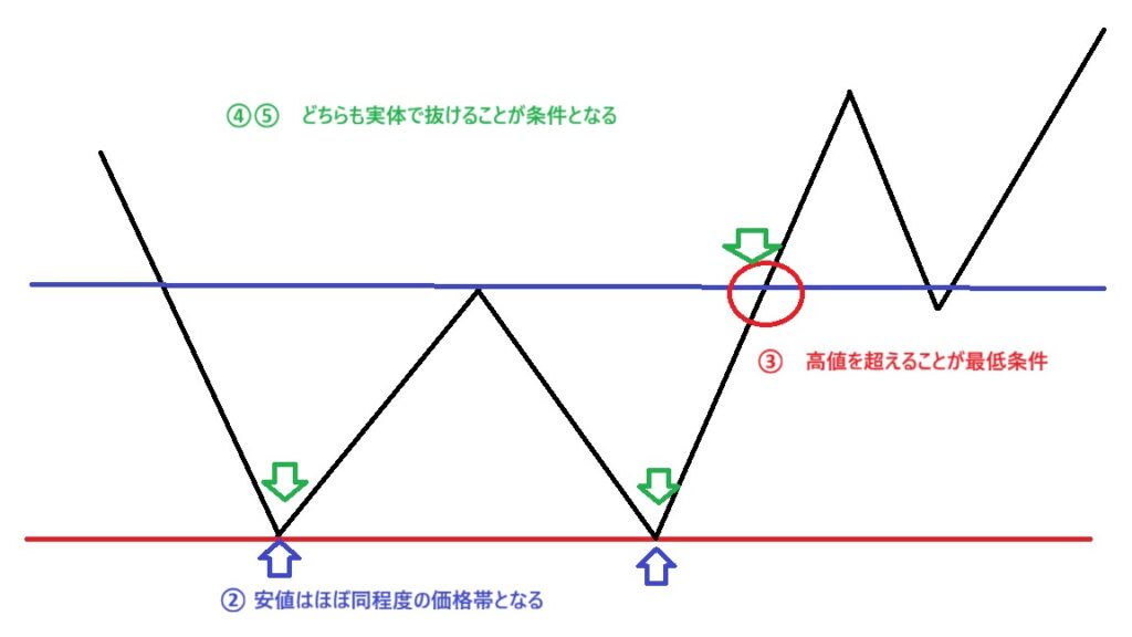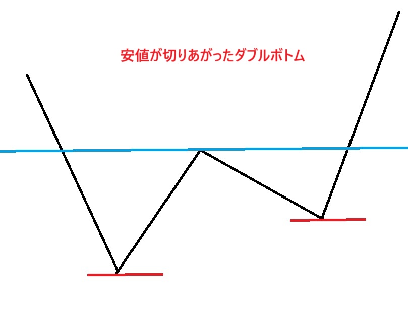 - 高値は実体で抜けていなければダブルボトムは成立しない